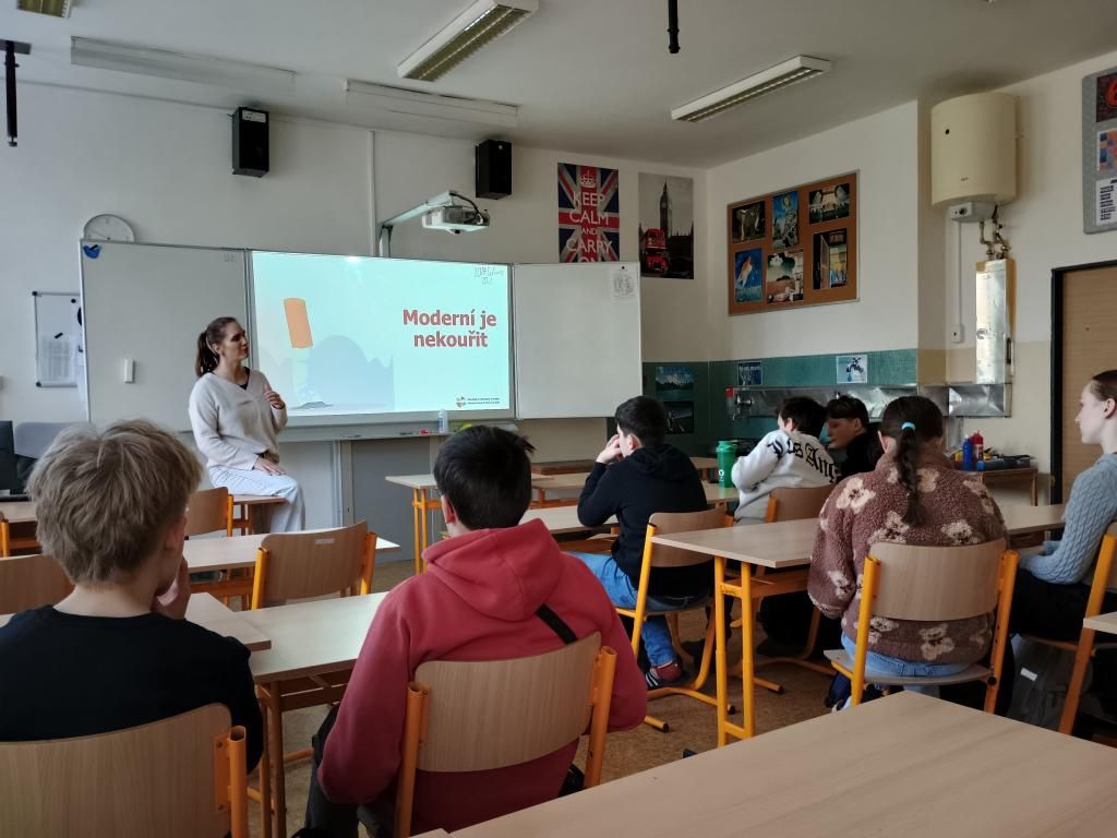 V pátek 20. února 2026 navštívila naši školu paní Ing. Petra Žídková z Krajské hygienické stanice s besedou pro 7.A a 7.B pod názvem Normální je nekouřit. Žáci se dozvěděli informace o různých typech nikotinových výrobků (cigarety, nikotinové sáčky, elektronické cigarety) a o jejich škodlivosti na lidský organismus. Na modelech zdravé plíce a plíce kuřáka viděli žáci, jak nikotin a další škodlivé látky z cigaret poškozují orgány v těle. Sedmáci již nyní vědí, že normální je nekouřit a co si užíváním nikotinu mohou přivodit.